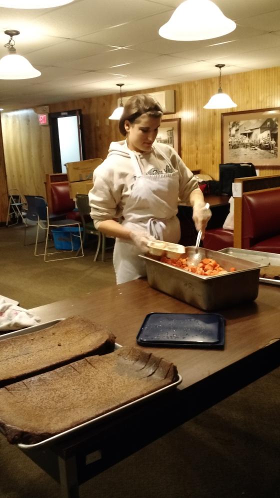 Cornucopia cooks for the Meals on Wheels program for Newport area residents, and on Fridays, Cornucopia runs a community lunch. The two programs give Cornucopia participants experience in kitchen essentials such as knife skills, cooking and baking, safety, and sanitation as well as hospitality skills greeting, serving, and working the lunch floor.